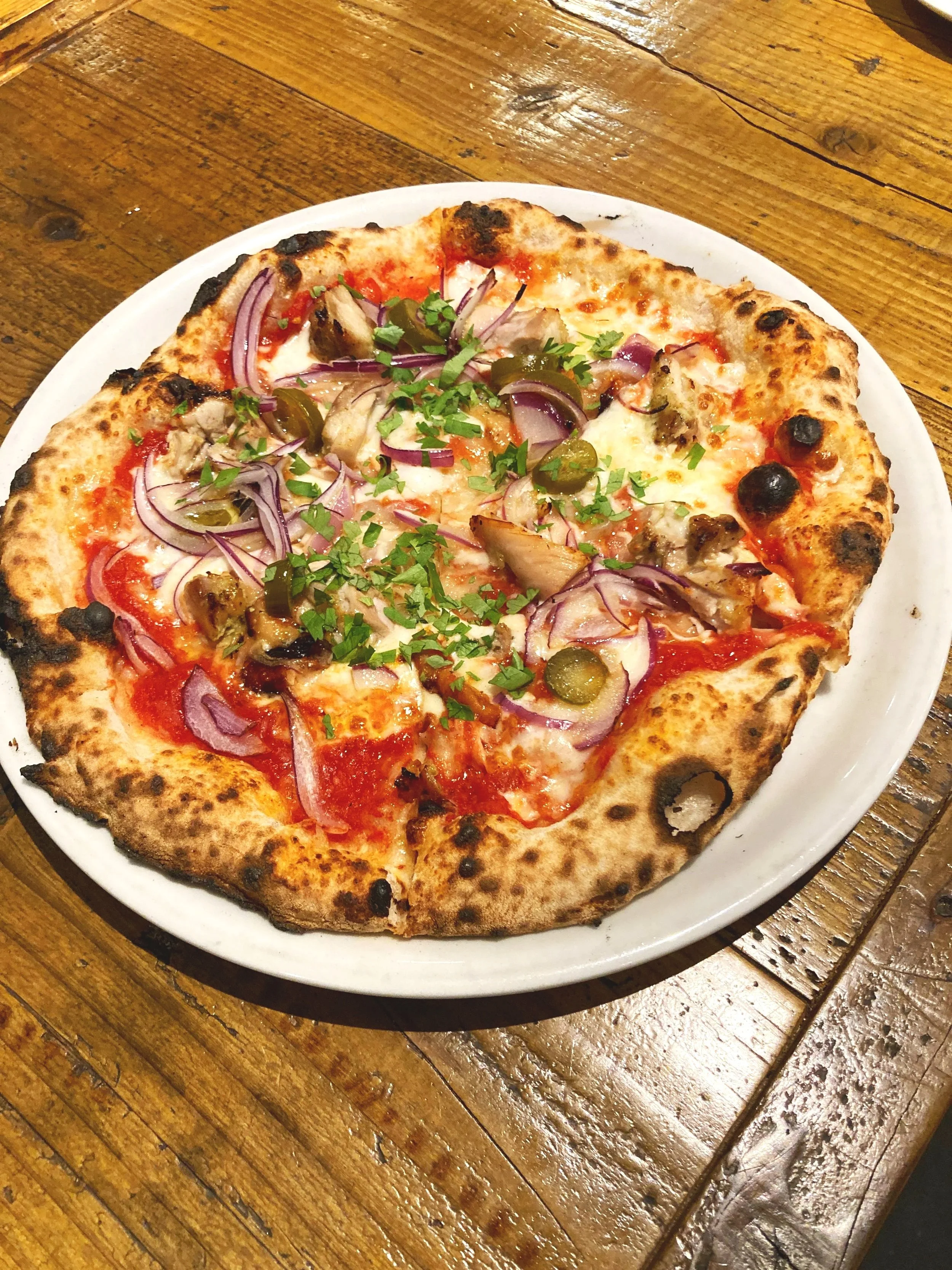 トマトソース、モッツアレラ、アンチョビオリーブ、ケッパー、オレガノ